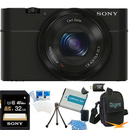 Sony DSC-RX100 20.2 MP Exmor CMOS Sensor Digital Camera with 3.6x Zoom BUNDLE with Sony 32GB High Speed Class 10 SD Card, Spare Battery, Deluxe Case, Card Reader, Mini Tripod, LCD Screen protectors and MORE!